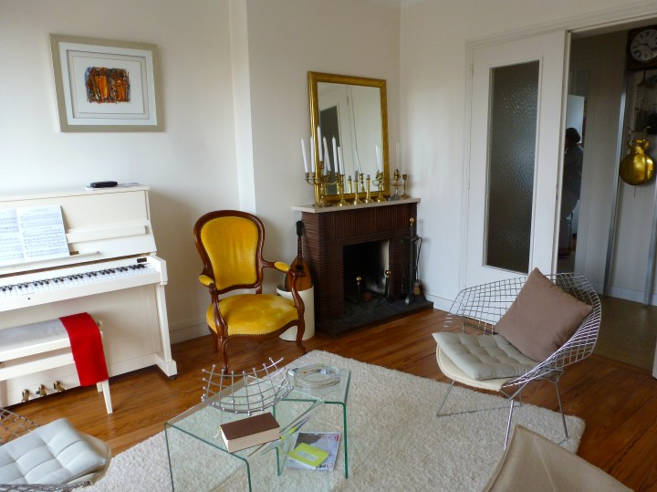 Joli salon avec vue dégagée , parquet blond et cheminée en état de marche , 2 chambres , une salle de bains , cuisine …